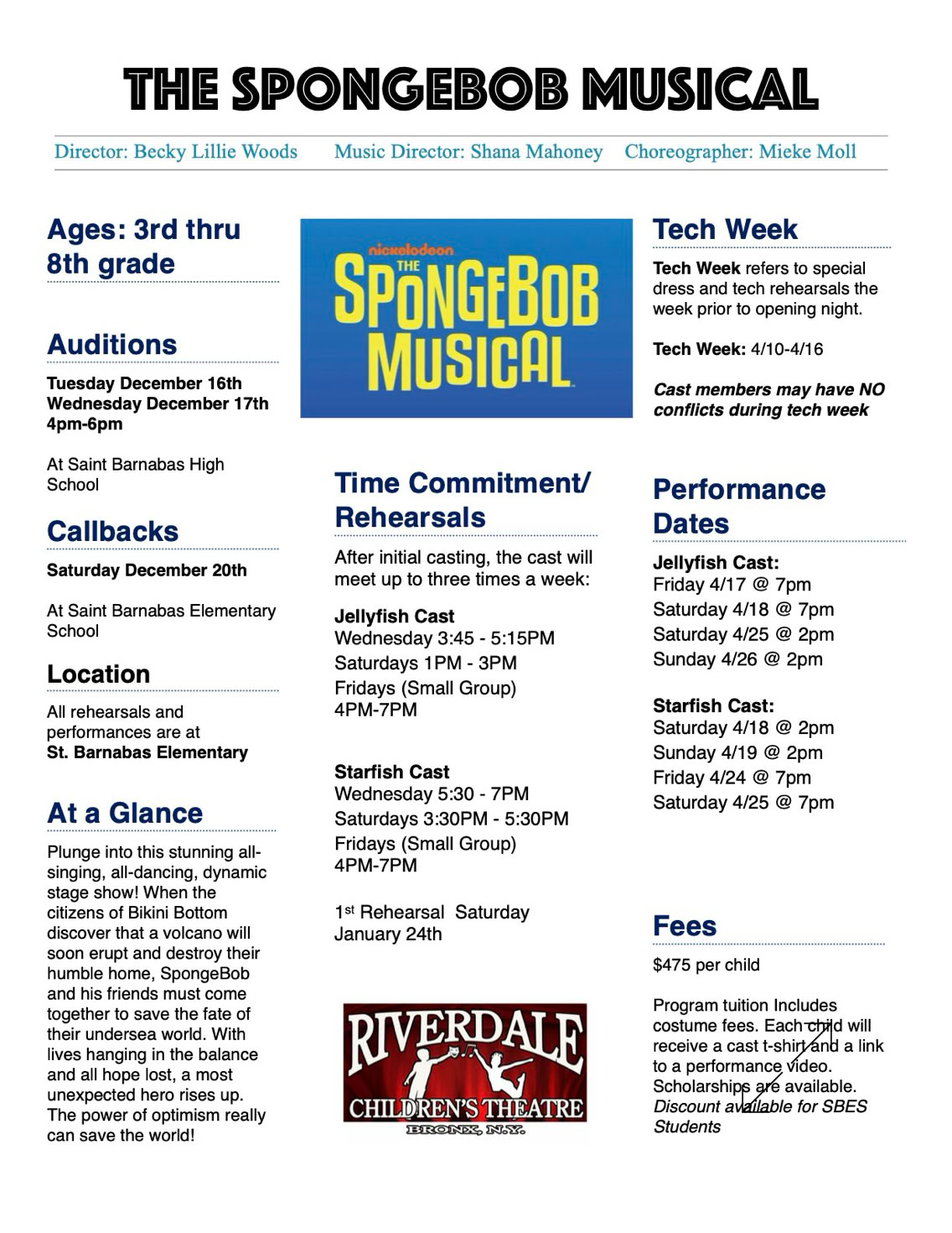 Please review all dates and insure your child can attend all rehearsals.