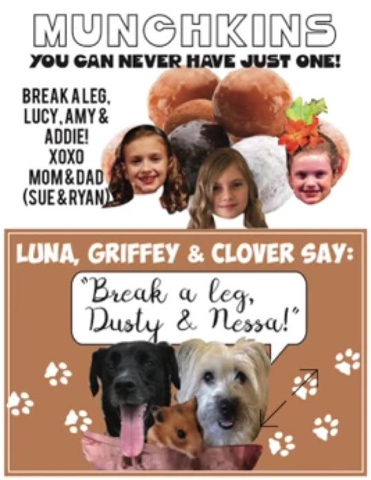 RCT BOOSTER ADS are a creative and fun way to pay for programming fees and add a little more “LOVE” to our PLAYBILL Program. They also raise much needed funds for our scholarship programs as well. Boosters also off set the cost of our program fees to keep them affordable for our families. Below is the link for your particular show, along with an option for credit card/PayPal for payment. On the link, fill out all your required information and upload your artwork or photo (Please upload all materials when you submit your booster)